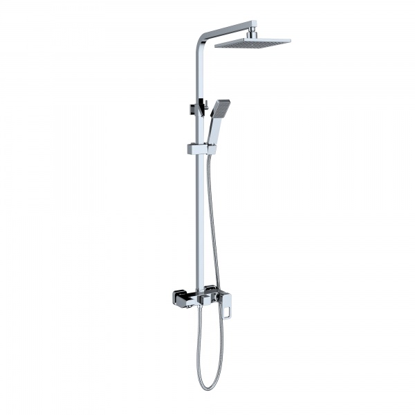 Она изготовлена из высококачественной латуни и предусматривает антикоррозийное покрытие. Выглядит презентабельно и будет притягивать к себе внимание. Конструкция предусматривает верхний и ручной душ. Штанга душевой системы регулируется по высоте. Материал верхнего и ручного душа пластик.