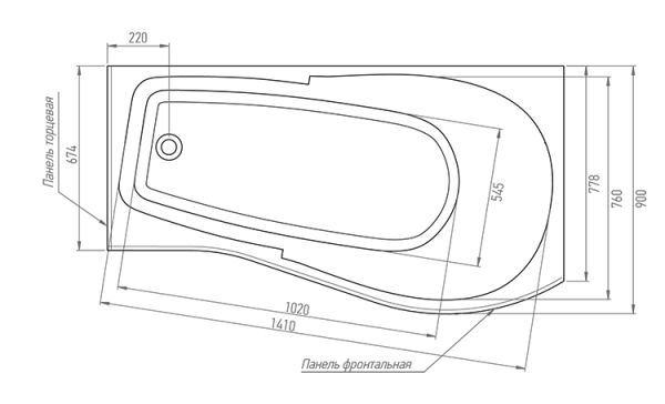 Торцевая панель (узкая) для акриловой ванны Vino 1590R.